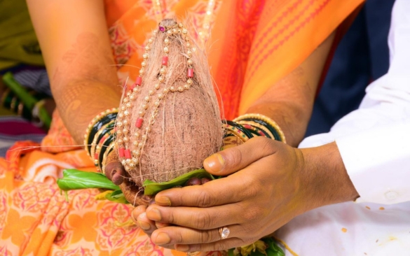Mangal Sutra (tying of the sacred thread), Saptapadi (seven steps around the sacred fire), and the exchange of vows and garlands. The ceremony is conducted by the Hindu priest,